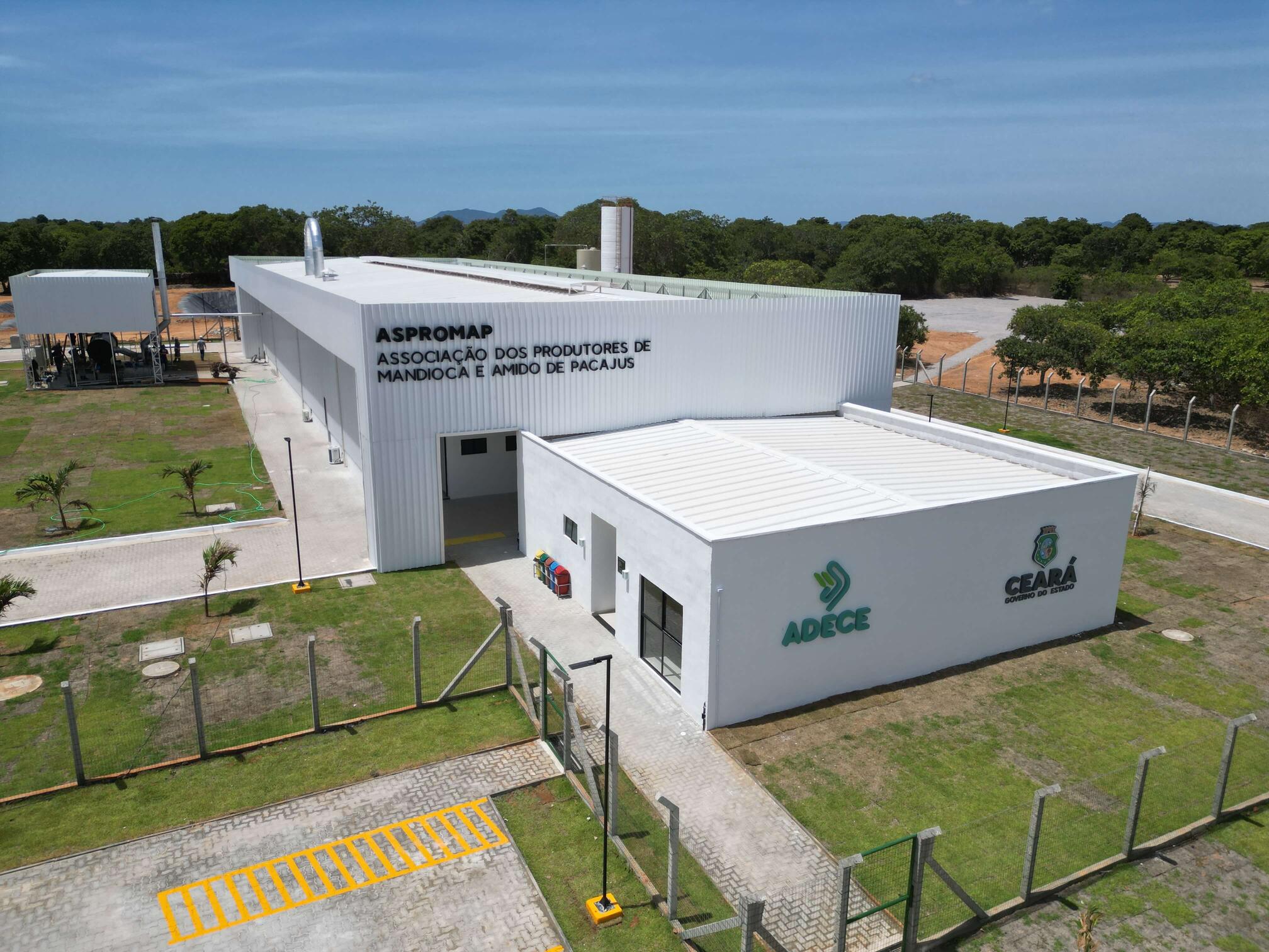 Execução de unidade industrial para beneficiamento de fécula de mandioca em parceria com a Ambev. A obra incluiu galpão com estrutura metálica, telhas termoacústicas, piso em concreto polido, sistemas de drenagem e irrigação, além de prédio anexo com área administrativa, salas, banheiros e refeitório.