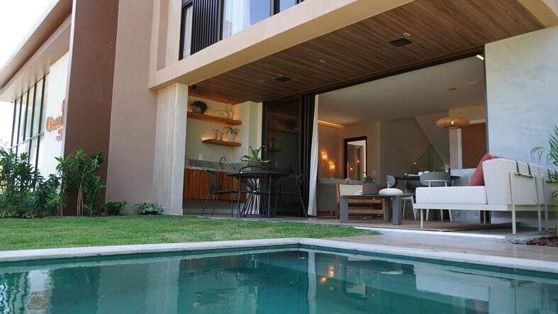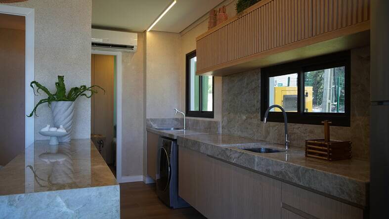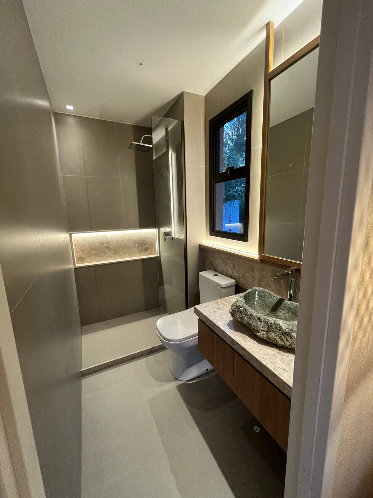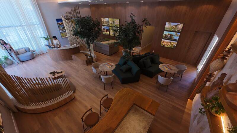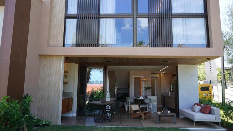 Execução do stand de vendas e apartamento decorado com 291,8m², localizado na praia de Cumbuco-CE. O projeto se destaca pela construção de um decorado com dois pavimentos, fachada em ACM e elementos arquitetônicos modernos e diferenciados, reforçando o alto padrão e sofisticação da obra.